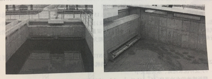 翻板閥濾池的配水系統(tǒng)屬于中(小)阻力配水系統(tǒng),采用獨(dú)特的上下雙層配氣配水層形 式,由橫向配水管、豎向配水管和豎向配氣管組成。這種獨(dú)特的結(jié)構(gòu)特點(diǎn)使得翻板閥濾池獲 得較其它類(lèi)型濾池更均勻的配水配氣性能。 翻板閥濾池的反沖洗方式也與其它類(lèi)型氣水反沖洗濾池不同,翻板閥濾池采用閉閥沖洗 方式,沖洗過(guò)程分為氣沖+氣水聯(lián)沖+水沖、單獨(dú)水沖兩大階段,無(wú)論水沖、氣沖時(shí)都不 向外排水,一個(gè)反沖洗階段結(jié)束后,靜止數(shù)十秒后再排水。因此翻板閥濾池基本不會(huì)出現(xiàn)濾料流失現(xiàn)象。